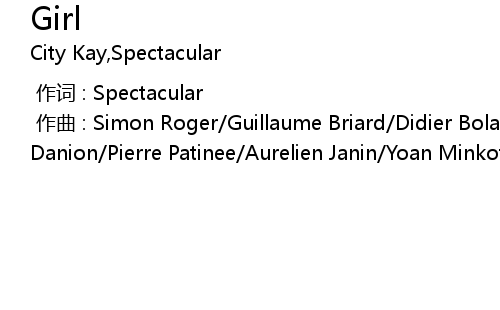 | [00:00.000] | zuo qu : Simon Roger Guillaume Briard Didier Bolay Ma l Danion Pierre Patinee Aurelien Janin Yoan Minkoff |