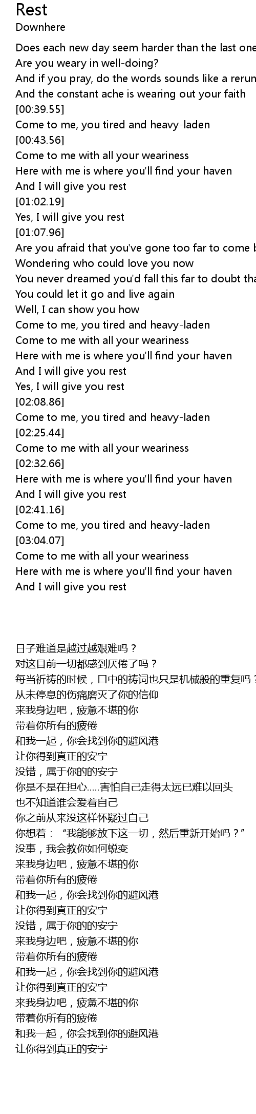 | [02:39.42] | And I will give you rest |