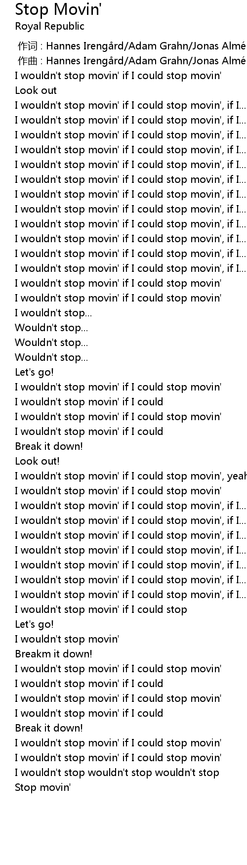 | [00:45.334] | I wouldn't stop movin' if I could stop movin', if I... |