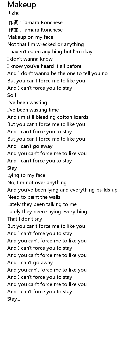 | [00:12.827] | Makeup on my face |
