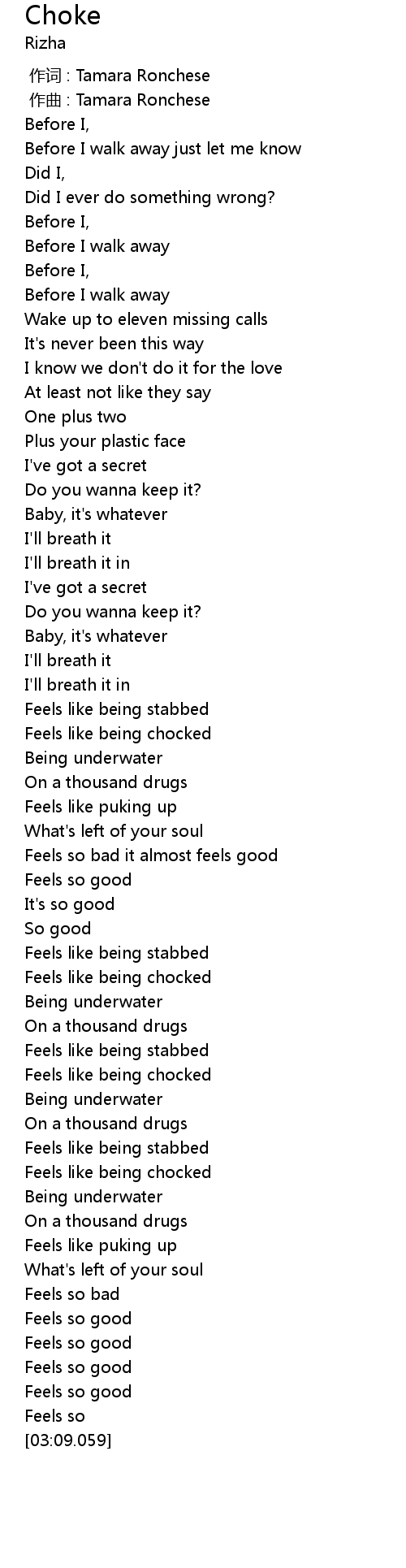 | [02:10.772] | Feels like being chocked |