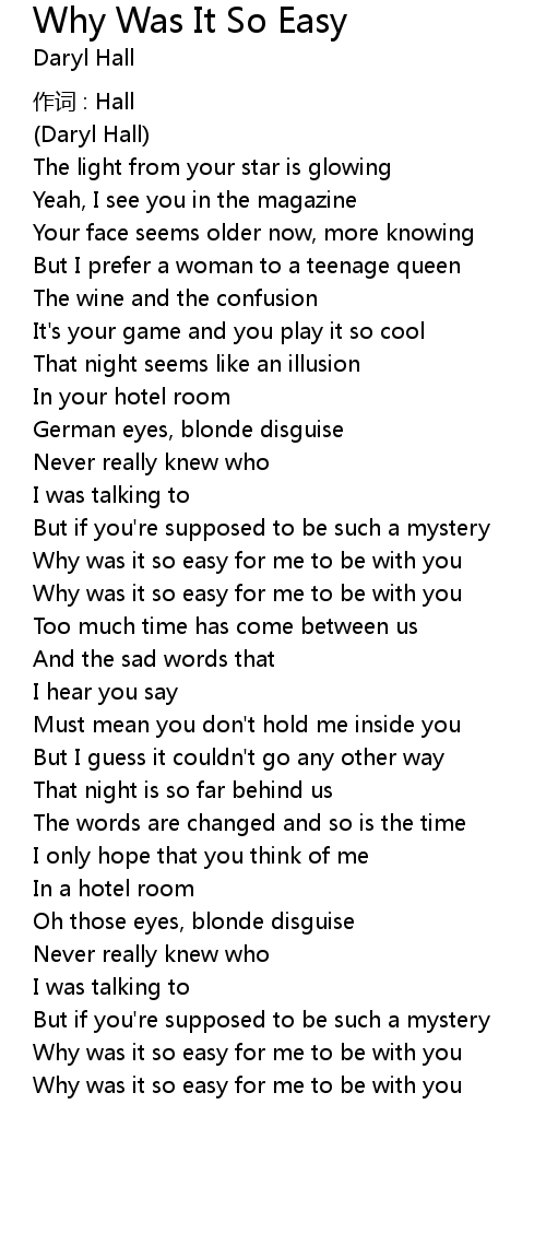 | 歌曲 | Why Was It So Easy |