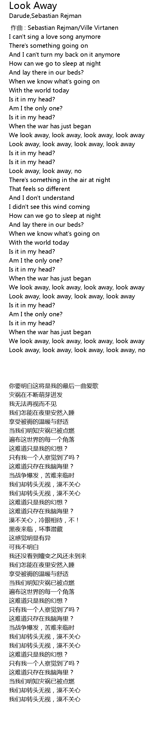 | [02:46.93] | Look away, look away, look away, look away, no |