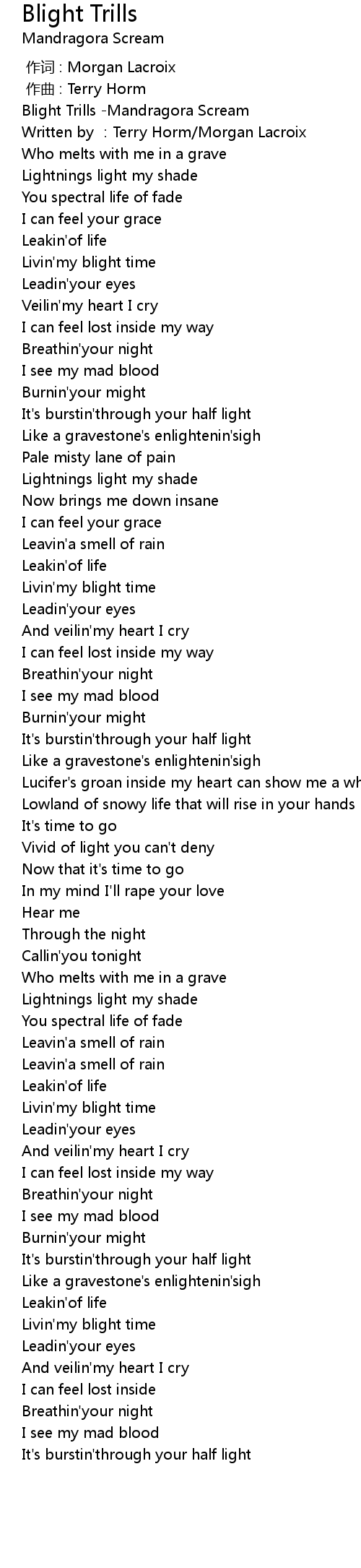 | [00:00.125] | Blight Trills -Mandragora Scream |