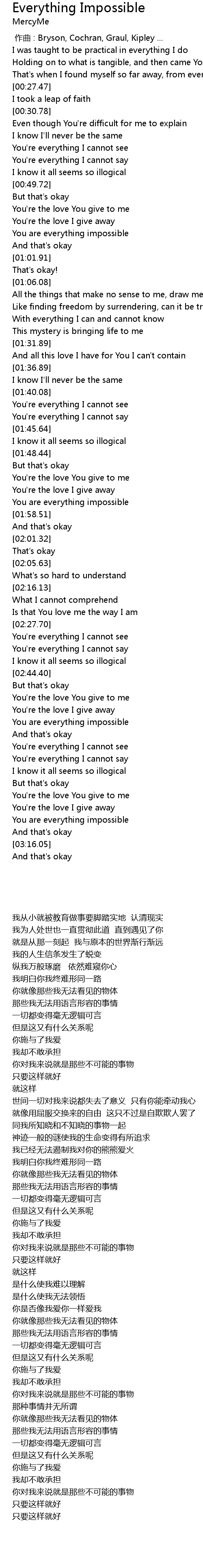 | [02:50.46] | You are everything impossible |