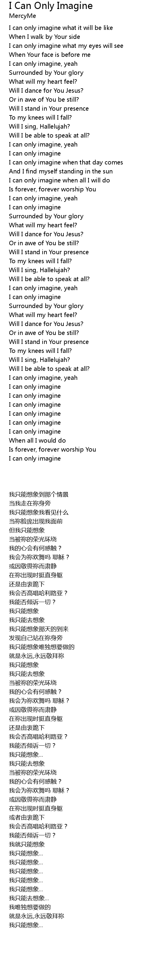 I can only imagine when all I will do |