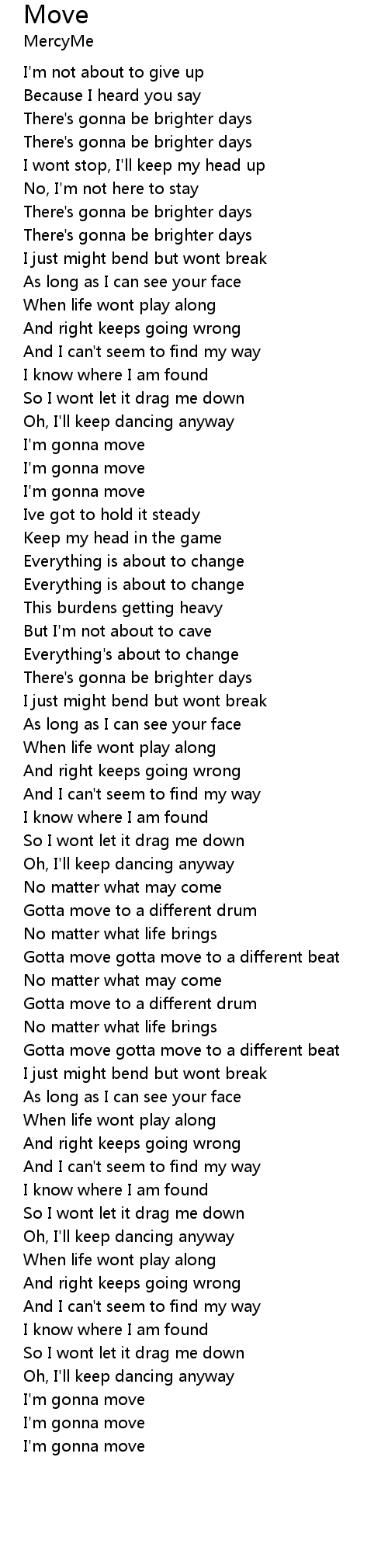Gotta move gotta move to a different beat |