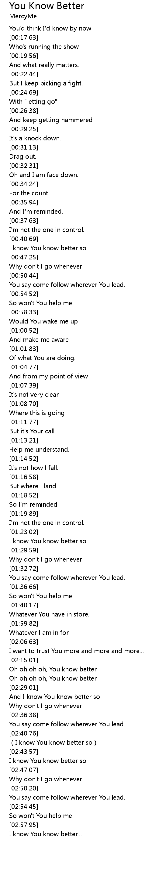 | [02:30.26] | And I know You know better so |