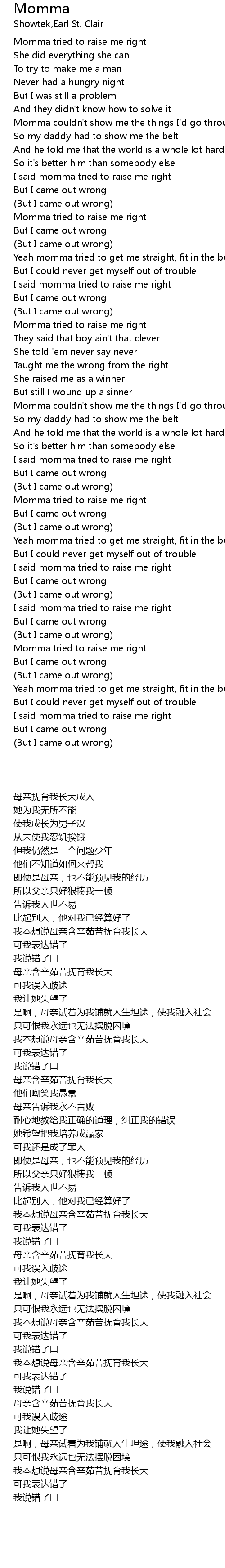 Momma couldn't show me the things I'd go through |