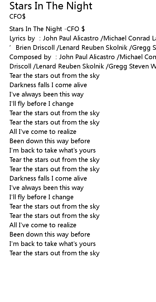 | [00:09.140] | Lyrics by :John Paul Alicastro /Michael Conrad Lauri /Ian O ’Brien Driscoll /Lenard Reuben Skolnik /Gregg Steven Wattenberg |