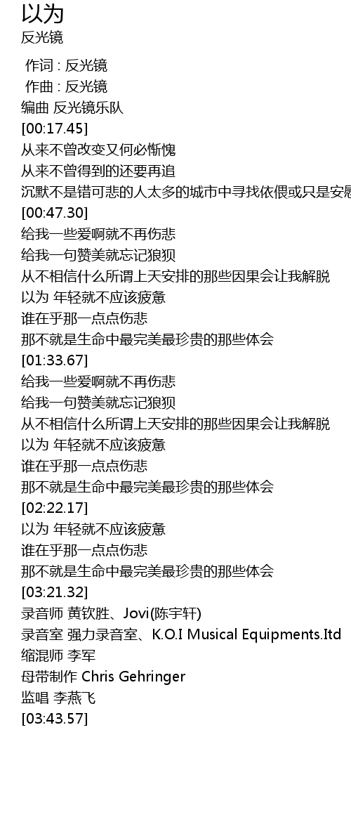 | [00:01.000] | zuò qǔ : fǎn guāng jìng |