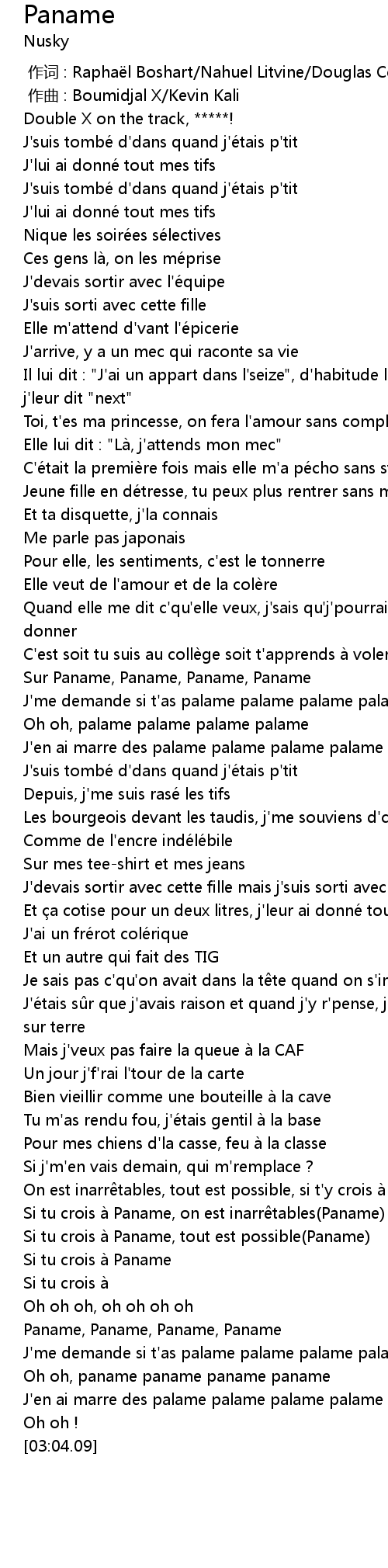 | [02:54.15] | Oh oh, paname paname paname paname |