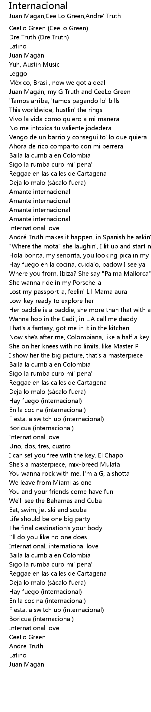 | [00:11.61] | Juan Magá n, my G Truth and CeeLo Green |