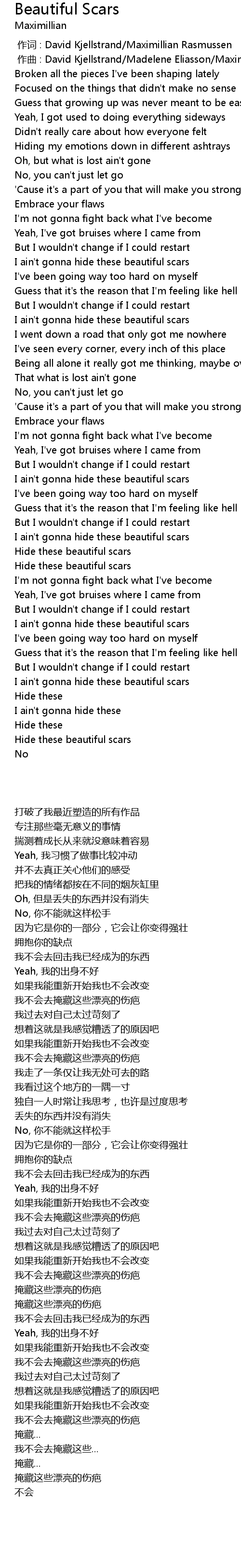 | [00:55.10] | 我不会去掩藏这些漂亮的伤疤 |