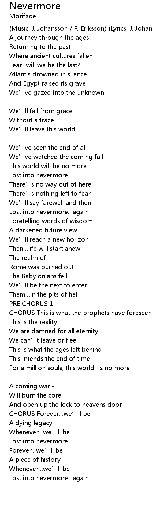 | Soon we' ll make a stand in nevermore PRE CHORUS 2 | |