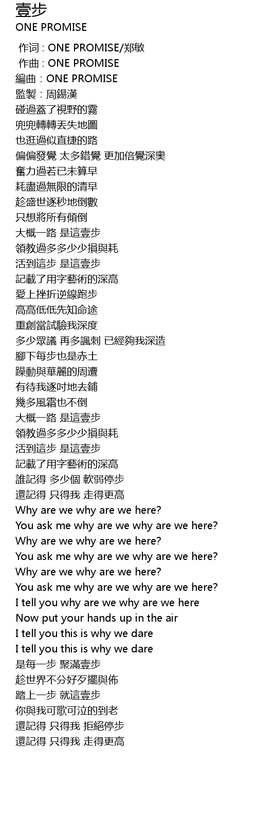 | [00:01.000] | zuò qǔ : ONE PROMISE |