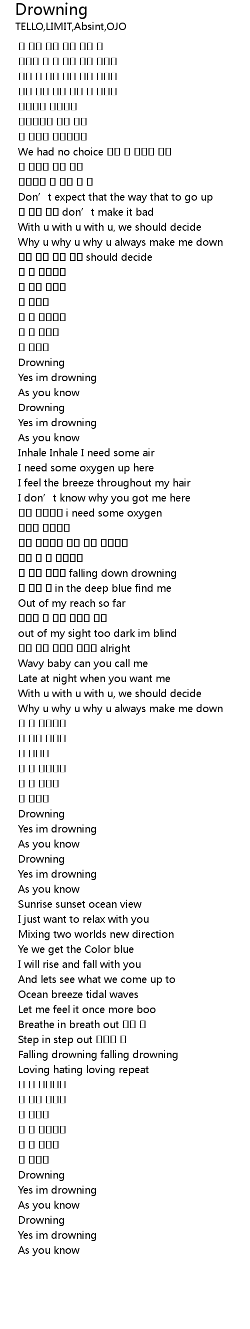 | [01:57.600] | 넌 낮은 곳으로 falling down drowning |