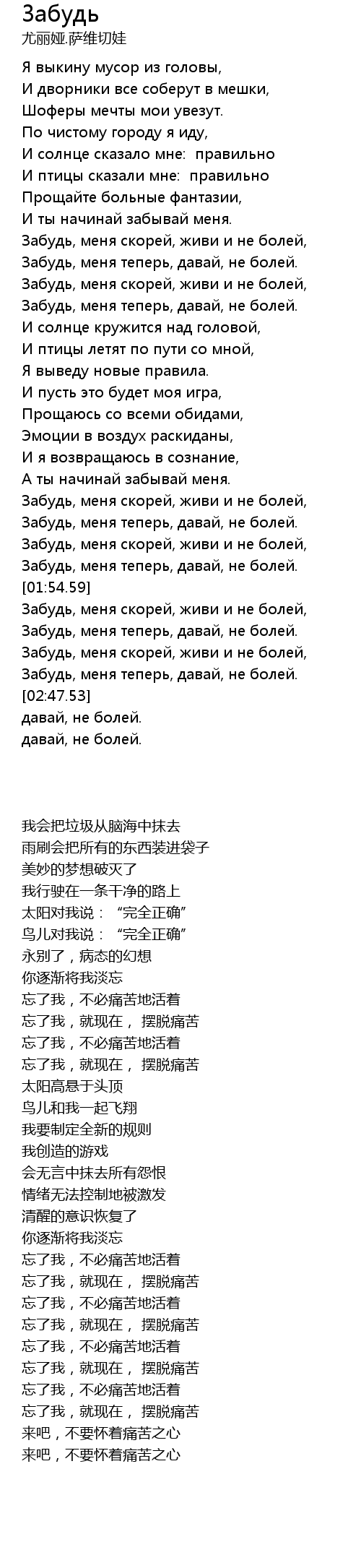 | [01:41.13] | Забудь, меня скорей, живи и не болей, |