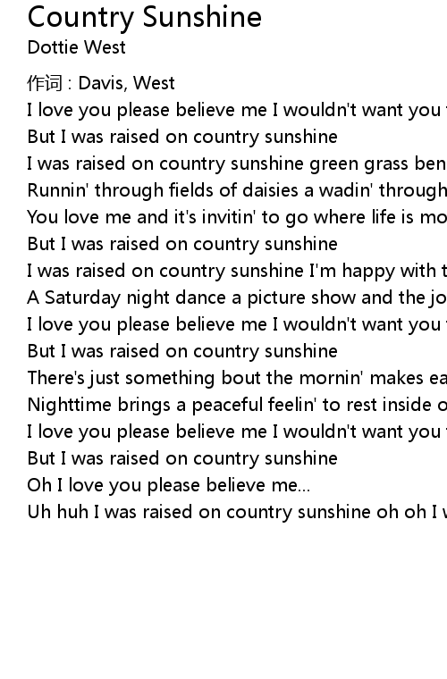 | Uh huh I was raised on country sunshine oh oh I was raised on country sunshine |