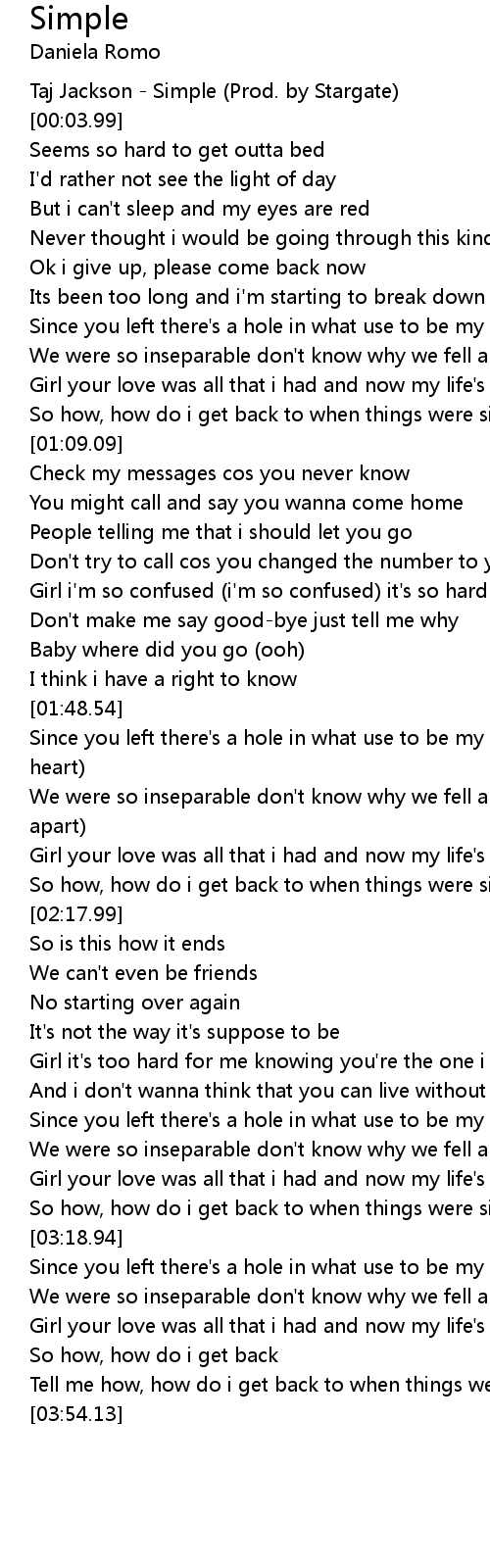 Tell me how, how do i get back to when things were simple |