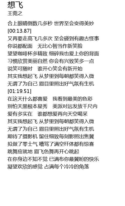 | [01:01.94] | qi shi wo xiang qi fei cong meng li dao mei chao dou xiao de ru wei |