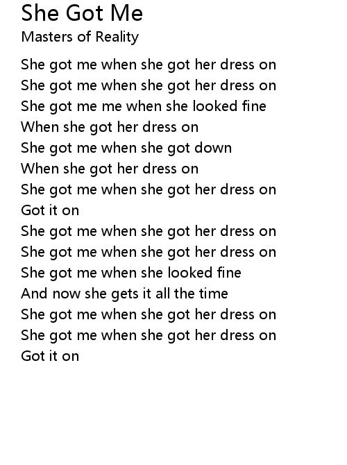 | She got me when she got her dress on | |