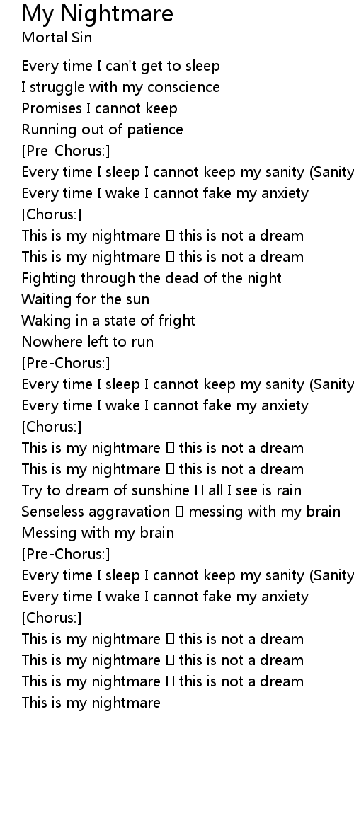 | This is my nightmare this is not a dream | |