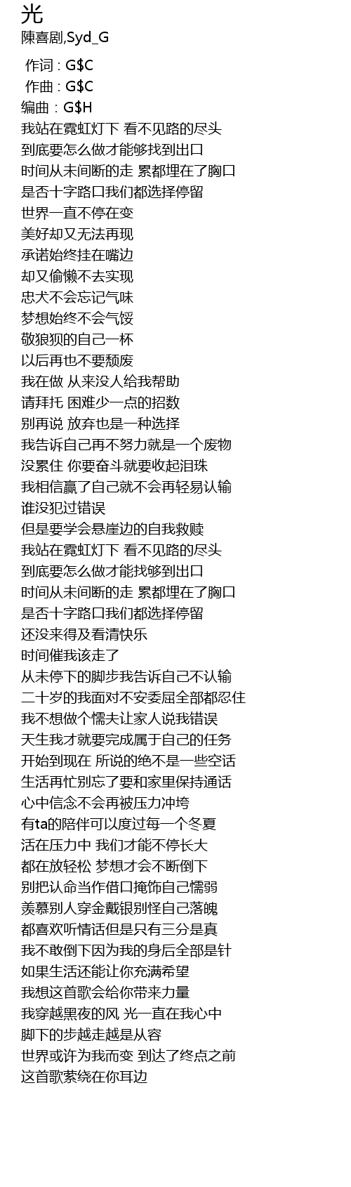 | [01:17.089] | 我站在霓虹灯下 看不见路的尽头 到底要怎么做才能找够到出口 |