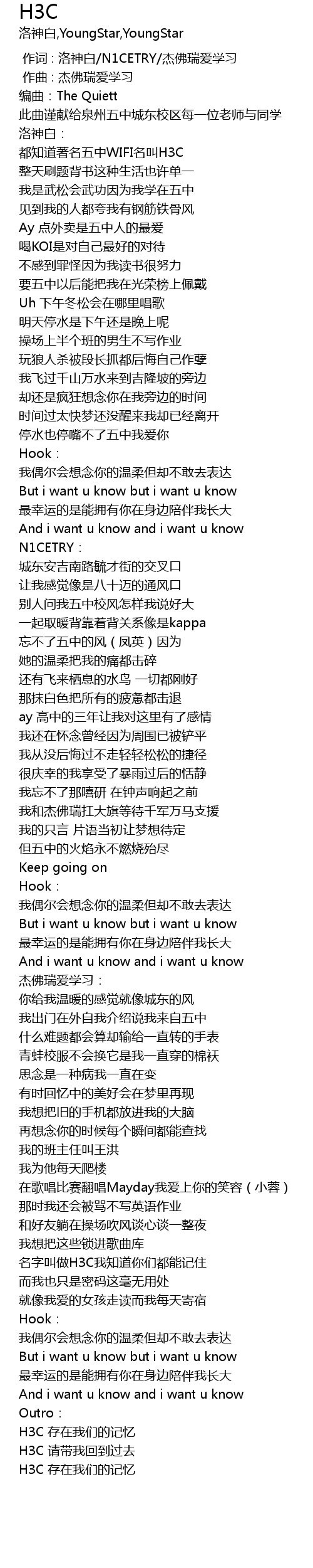 | [02:59.814] | ming zi jiao zuo H3C wo zhi dao ni men dou neng ji zhu |