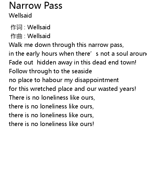 | [00:23.150] | Walk me down through this narrow pass, |