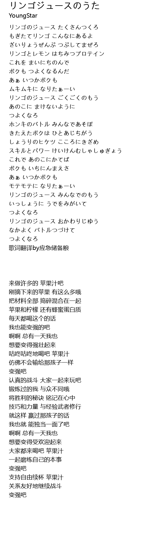 | [00:10.520] | リンゴのジュース たくさんつくろ |