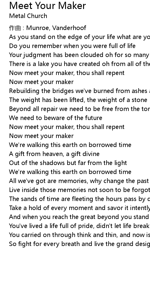 | 歌曲 | Meet Your Maker |