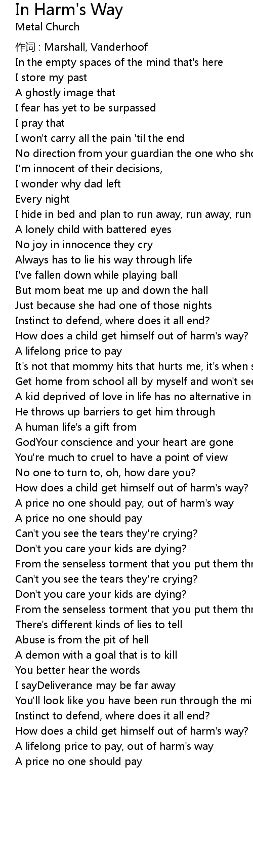 | 歌曲 | In Harm's Way |