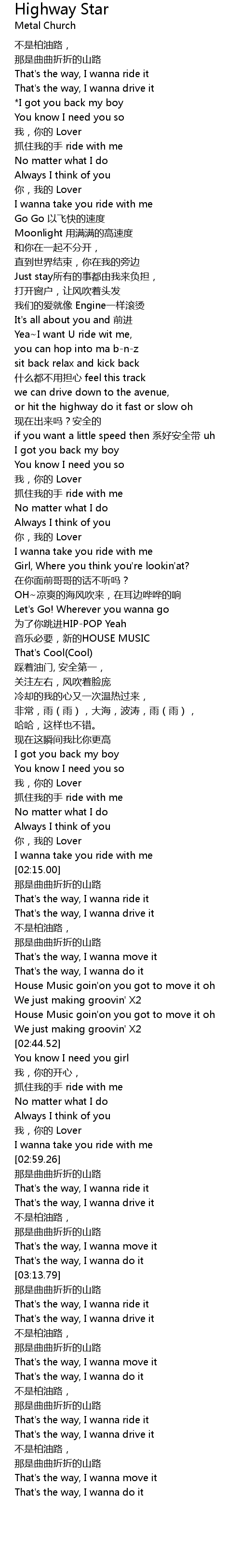| [03:19.31] | That's the way, I wanna drive it |