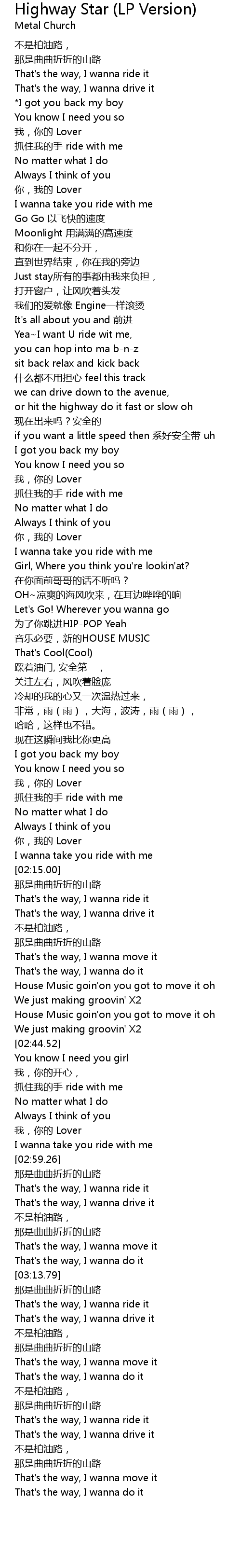 | [03:19.31] | That's the way, I wanna drive it |