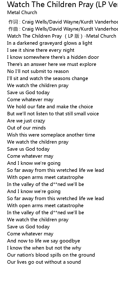 | [00:00.151] | Watch The Children Pray (LP 版)-Metal Church |