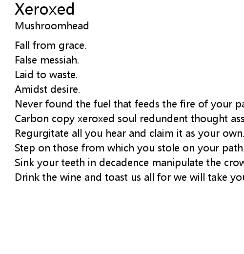| Carbon copy xeroxed soul redundent thought assassin. | |