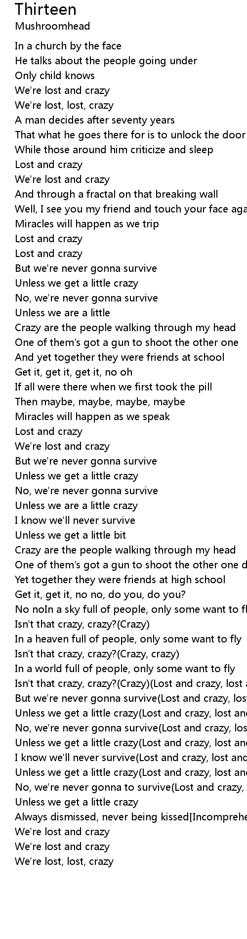 I know we'll never survive(Lost and crazy, lost and crazy) |