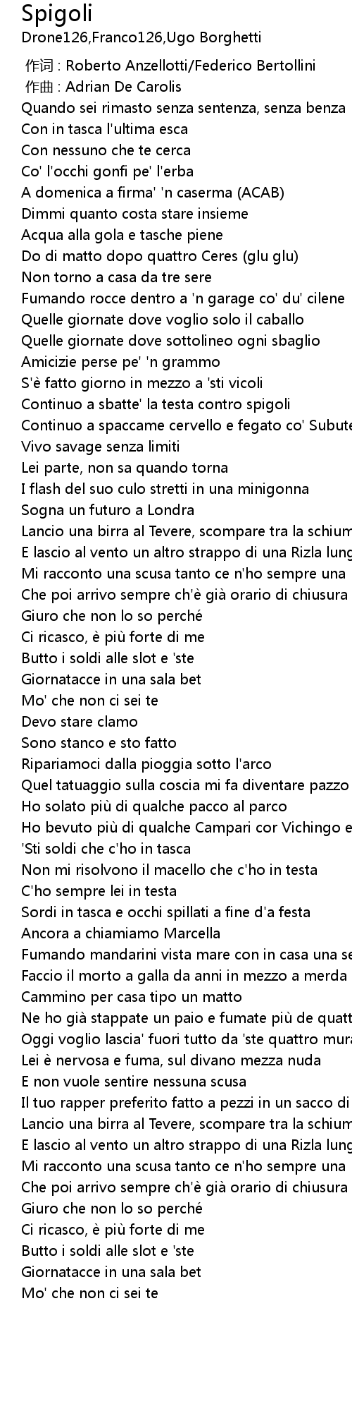 | 歌曲 | Spigoli |
