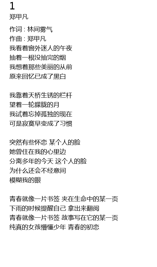 | 作词 : 林间雾气 | |