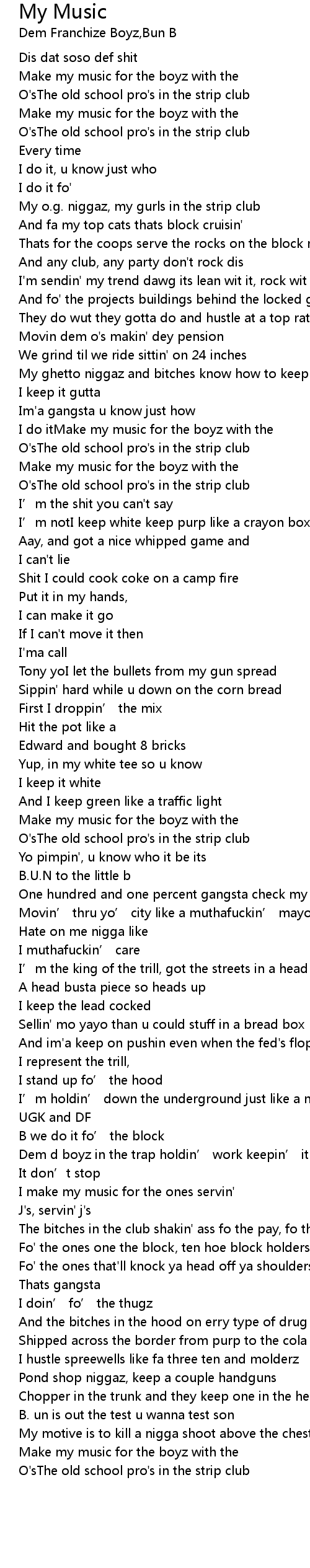 | Movin’ thru yo’ city like a muthafuckin’ mayor | |