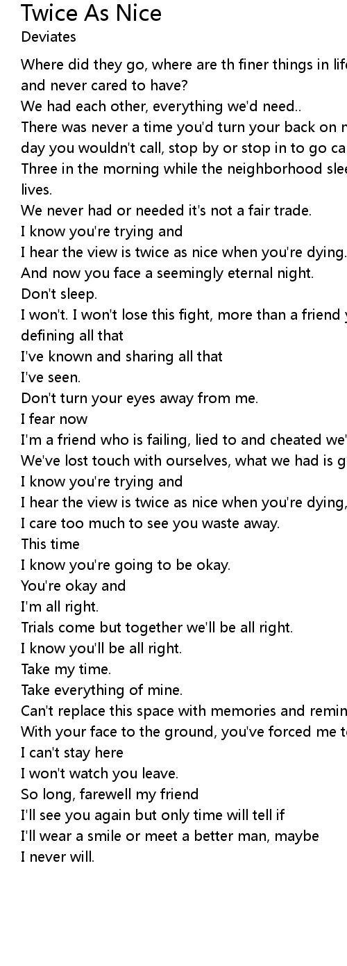 I won't. I won't lose this fight, more than a friend you're a part of me, defining all that |