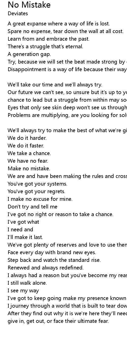 Our future we can't see, so unsure but it's up to you and me, we've got our chance to lead but a struggle from within may soon be our defeat. |