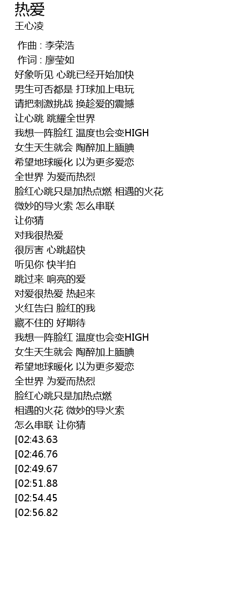 | [03:07.57][02:51.88][02:16.77] | 对爱很热爱 热起来 |