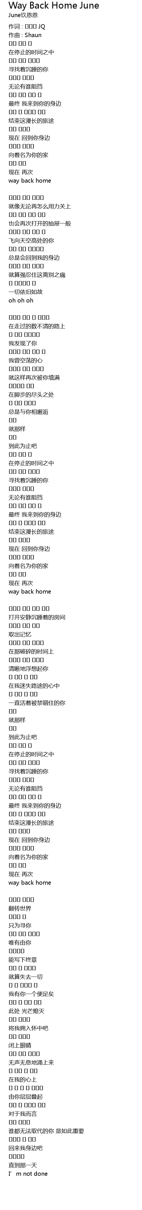 | 歌曲 | Way Back Home June |