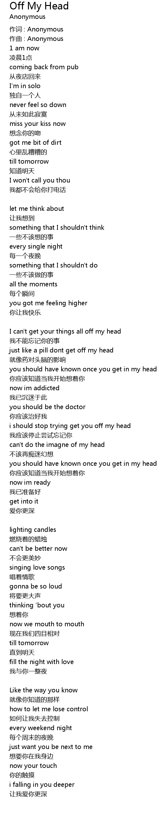 | 歌曲 | Off My Head |