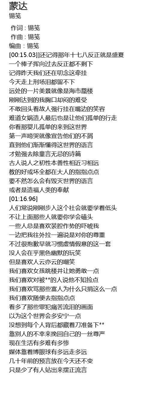 | [00:41.58] | 才勉强去除童言无忌的诗篇 |