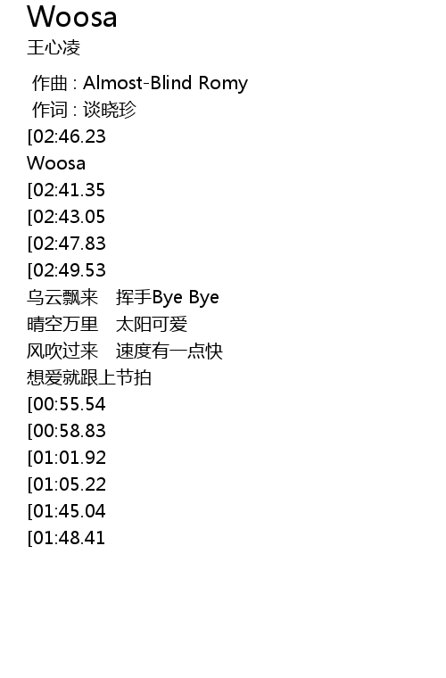 | [03:02.45][02:49.53][02:02.84][01:25.95][00:36.11] | Say Ya Say Ya Woosa Woosa |