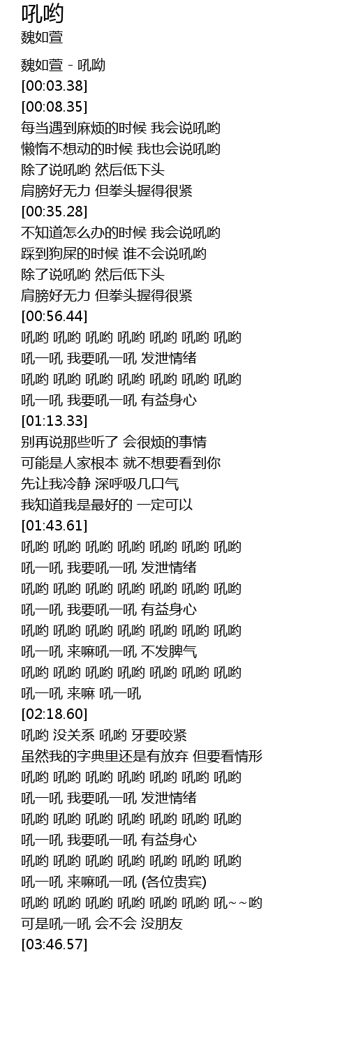 | [00:00.00] | 魏如萱 - 吼呦 |