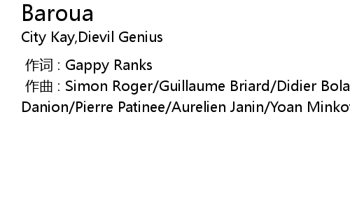 | [00:00.000] | zuo qu : Simon Roger Guillaume Briard Didier Bolay Ma l Danion Pierre Patinee Aurelien Janin Yoan Minkoff |